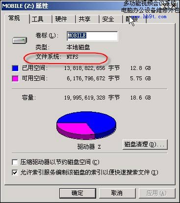 NTFS的英文全稱為“NT File System”,中文意為NT文件系統(tǒng)(見圖1 24rntfs01 在“我的電腦”中右擊“屬性”,在彈出窗口中就可以看到文件系統(tǒng)信息)。它隨著1996年7月的Windows NT 4.0誕生的,但直到Windows 2000,它才開始在個(gè)人用戶中間得以推廣,跨入了主力分區(qū)文件系統(tǒng)的行列。今天,Windows XP/2003和NTFS早已是“如膠似漆”了。